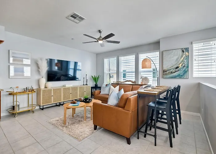 Offering an aqua park and a play area for guests' leisure, Blocks To Beach - Coastal Beach Decor - Garage Parking - Gated Community - 30 Day Fully Furnished is situated a 10-minute ride from Buddy Todd Park. The 3-bedroom villa features opportunities for water sports activities, windsurfing, and snorkelling in the area, a 10-minute ride from Pacific Street Linear Park.